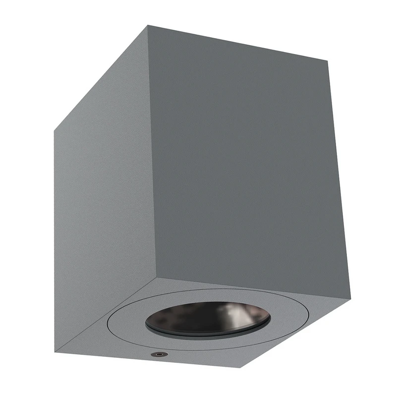 Diese Außenwandleuchte verfügt mit ihrer Gestaltung als eckiger, stehender Kubus über eine schlichte und moderne Formensprache. Die LEDs befinden sich bei Canto Kubi 2 hinter runden Abdeckungen als klarem Glas an der Ober- und Unterseite, durch die das warmweiße Licht jeweils in einem Winkel von 120 ° nach außen fällt. Das Ergebnis ist Up-and-Down-Beleuchtung; dekorative Lichtakzente lassen sich mittels der im Lieferumfang enthaltenen Schablonen erzielen. Canti Kubi 2 ist ganz zeitgemäß aus Aluminium-Spritzguss gefertigt.