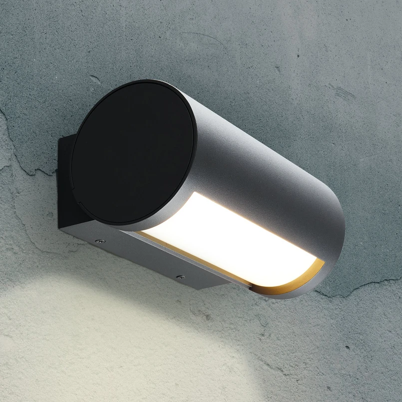 Die moderne LED-Außenwandleuchte Timor bietet Licht für jede Gelegenheit. Der Korpus ist hier aus pulverbeschichtetem Aluminiumdruckguss. Am rund gestalteten Leuchtkörper befindet sich die Lichtaustrittsstelle in Form eines großen matt weißen Kunststoff-Diffusors. Da sich der Leuchtkörper ganz einfach drehen lässt, kann das Licht der LED-Außenwandleuchte Timor entweder direkt nach unten, nach oben oder auch zu beiden Seiten strahlend positioniert werden. Eine Anschlussbox sorgt hier für eine schnelle und einfache Montage.