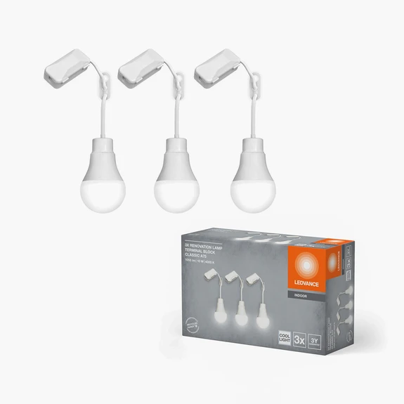 Diese LED-Baufassung ist ideal für Renovierungsarbeiten oder Neubauten zur temporären Beleuchtung und lässt sich dank Anschlussbox mit Anschlussklemme direkt am Stromkabel an der Decke oder an der Wand anschließen.