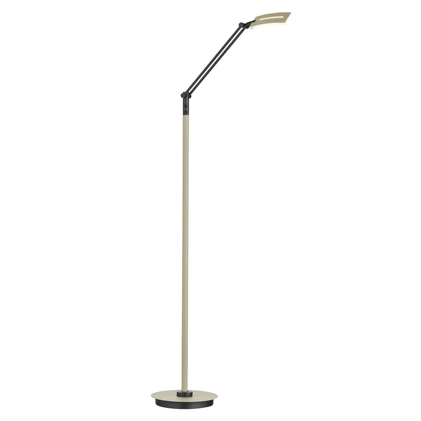 Evolo ist eine Stehleuchte in modernem Design, die sich perfekt als Leseleuchte im Wohnraum eignet. Der Auslegerarm mit zwei Gelenken erlaubt eine flexible Einstellung des Leuchtenkopfes, aus dem das Licht einseitig flächig und auf der Rückseite durch einen schmalen Lichtschlitz austritt. Zwei Taster an Gestell ermöglichen die Einstellung der Lichtfarbe im Bereich von warmweißer Beleuchtung mit 2.700 K bis hin zu Tageslicht mit 6.000 K sowie das stufenlose Dimmen des Lichts.
