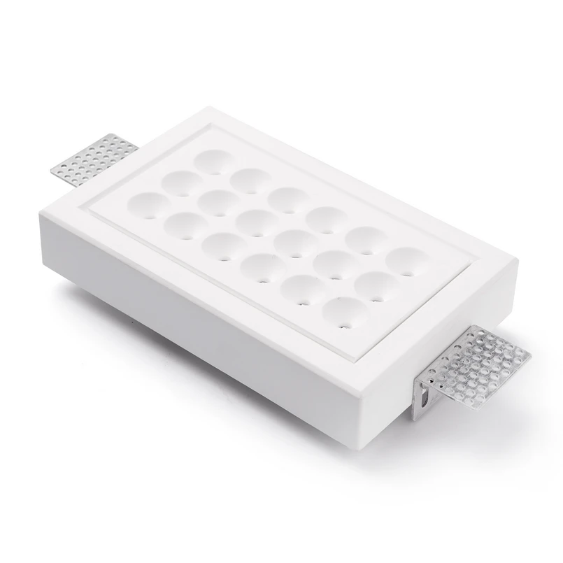 Die LED-Deckeneinbauleuchte Ade ist aus hochwertigem Gips gefertigt und lässt sich sehr gut in helle Decken integrieren. Allerdings kann der Rahmen nach der Montage in beliebiger Farbe gestrichen werden, was die Einsatzmöglichkeiten noch flexibler macht.