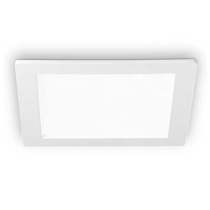 Die LED-Deckeneinbauleuchte Groove ist mit einem eckigen Aluminiumrahmen ausgestattet. In seinem Innern befindet sich ein matter Diffusor in ebenfalls quadratischer Form. Die gesamte Einbauleuchte ist weiß und zieht durch keinerlei Details die Aufmerksamkeit auf sich. Die LEDs beleuchten mit einem Abstrahlwinkel von 90° einen breite Fläche unterhalb der Leuchte.