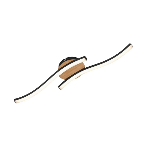 Moderne LED-Deckenleuchte Go in Schwarz mit Holzdekor und zwei gewellten Streifen