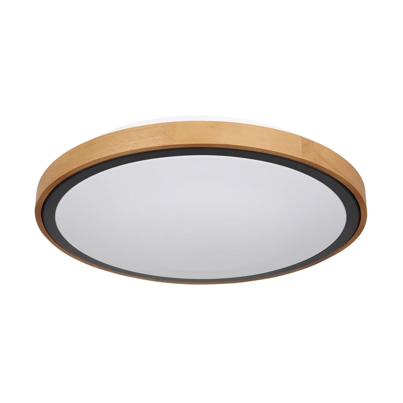 Runde LED-Deckenleuchte Bruno mit Holzrahmen, Lichtfarbe wählbar