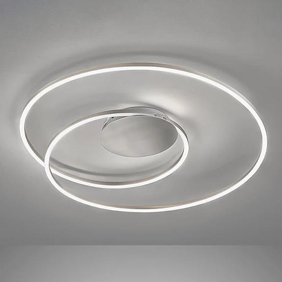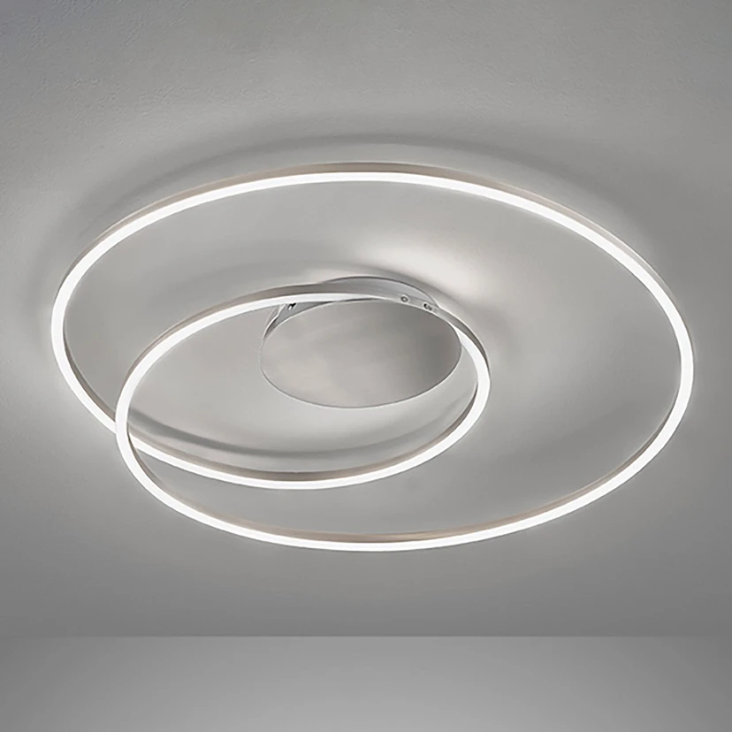 Ein spiralförmiges, modernes Design und eine komfortable und flexible Lichtgestaltung zeichnen die LED-Deckenleuchte Holy aus. Die Leuchte aus Metall ist mit LEDs hinter der opalweißen Abdeckung bestückt, die sich in der Lichtfarbe von warmweiß bis tageslicht verstellen und auch stufenlos dimmen lassen. Die Einstellungen werden bequem über die mitgelieferte Fernbedienung vorgenommen.