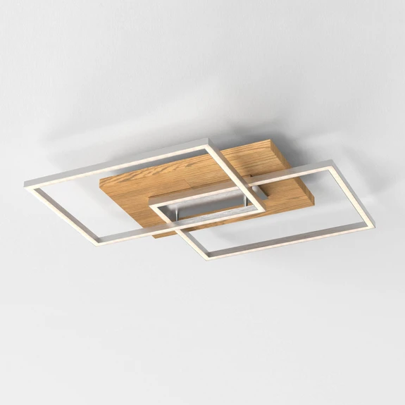 Eine moderne, geometrische Form zeigt das Design der LED-Deckenleuchte Panama S, die mit einer natürlichen Massivholzplatte und leistungsstarken LEDs ausgestattet ist. Eine mitgelieferte Fernbedienung sorgt dafür, dass das Licht der LEDs gedimmt werden kann und auch in der Farbtemperatur variabel ist. Ob ein warmes Weiß für gemütliche Stunden oder ein kühler Ton für konzentriertes Arbeiten, mit der LED-Deckenleuchte Panama S ist dies kein Problem. Komfort und modernes Design vereinen sich hier geschickt und bieten ein optimales Licht für die unterschiedlichsten Wohnräume.