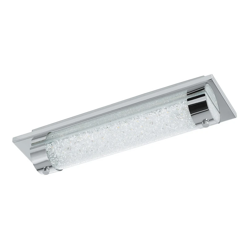 Auf dem rechteckigen Deckenelement aus Edelstahl wurde bei der LED-Deckenleuchte Tolorico eine klare Glasröhre angebracht, die im Inneren mit funkelndem Kristalleffekt gestaltet wurde und seitlich von zwei verchromten Ringen gehalten wird. Die edle Erscheinung und die funkelnde Lichtwirkung machen die Leuchte zu einem exklusiven Lichtelement, ob als Deckenleuchte oder als Wandleuchte montiert. Mit Schutzart IP44 vor Spritzwasser geschützt, eignet sich die Leuchte auch für die Nutzung im Badezimmer.
