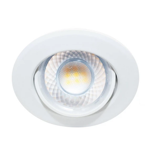 Der runde, weiße LED-Einbaustrahler Dekto kann in vielen Räumen installiert werden, auch in Feuchträumen, denn er ist mit Schutzart IP44 vor Feuchtigkeit geschützt. Der Strahler ist im Gehäuse schwenkbar und strahlt das Licht im einem Winkel von 38° aus. Der langlebige und sehr schaltfeste LED-Einbaustrahler Dekto zeichnet sich durch eine sehr gute Lichtqualität mit einem Farbwiedergabeindex von Ra90 aus.