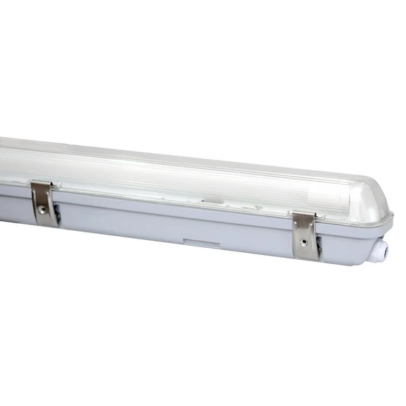Die Feuchtraumleuchte Niehl aus Kunststoff mit klarer Kuppel und Stahlhalteklammern ist nach DIN EN 60598-2-24 (D) für den Einsatz in feuergefährdeten Betriebsstätten und auch für die Beleuchtung von Stall und Hof geeignet. Sie wird inklusive LED-Röhre geliefert und ist mit Schutzart IP65 geschützt (staubdicht und vor Strahlwasser geschützt). Die Wannenleuchte ist kaskadierbar - es können mehrere Leuchten miteinander verbunden werden.