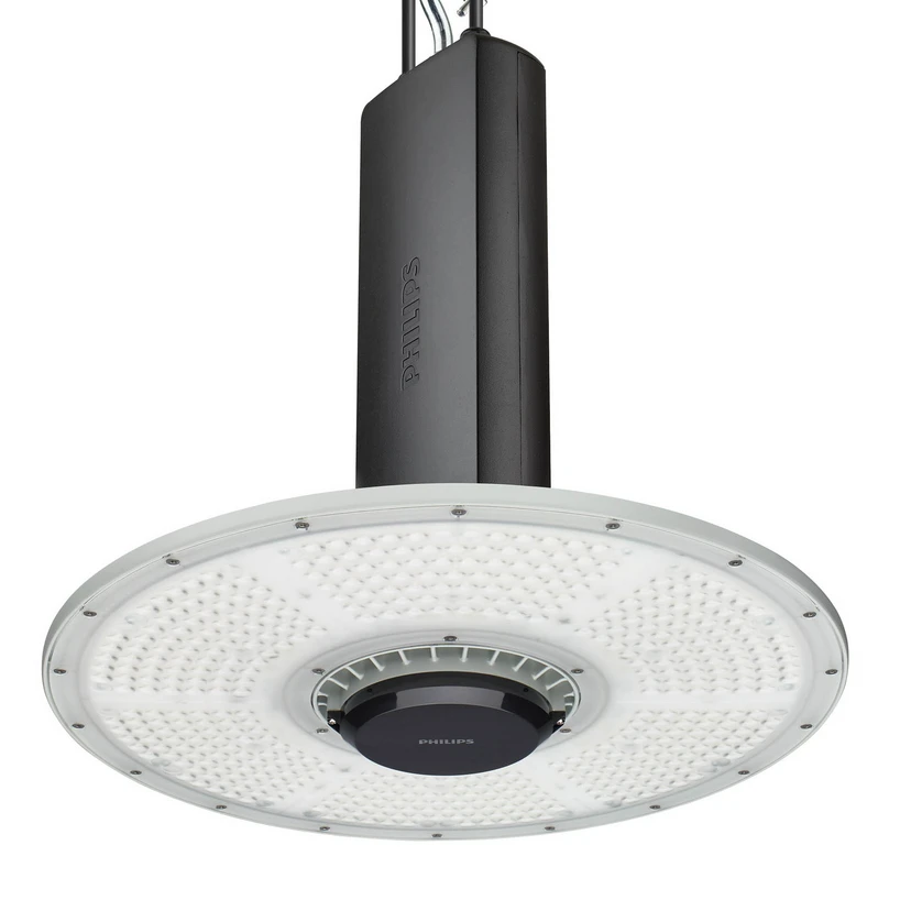 Der LED-Hallenstrahler BY122P aus der Serie Philips CoreLine HighBay dient zur effektiven Ausleuchtung von Produktions- und Lagerbereichen. Er überzeugt mit hervorragender Energieeffizienz, Dimmbarkeit und unkomplizierter Inbetriebnahme dank des vormontierten Industriesteckers. Die Leuchte besteht aus einem grauen Aluminiumgehäuse und einem Diffusor aus Polycarbonat und ist mit einem Haken zur Einpunktaufhängung ausgestattet; alternativ ist die Anbaumontage mittels Bügel (nicht enthalten) möglich.