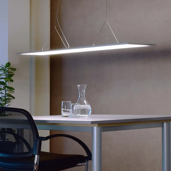 Lichtstarkes Panel: LED-Hängeleuchte mit direkter und indirekter Lichtverteilung