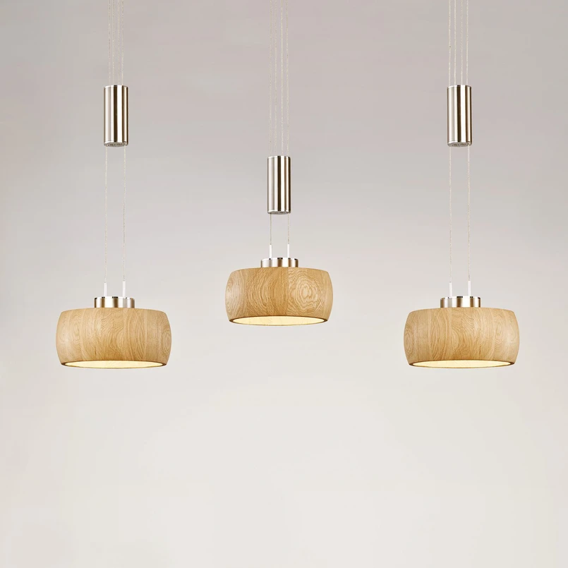 LED-Hängelampe Shine-Wood, Eiche/nickel, Länge 100 cm 3-flg.