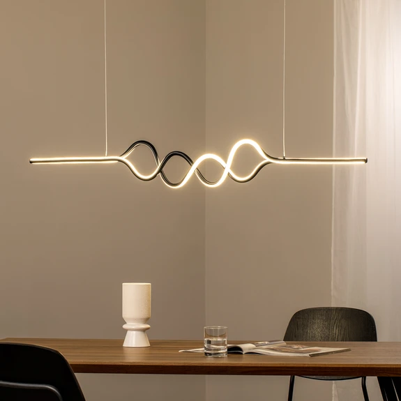 Die LED-Hängeleuchte Ancona besteht aus einem schwarzen Baldachin und einem goldfarbenen Schirm, der sich in der Mitte teilt und ineinander verschlungen ist. Einseitig wurden hinter der weißen Abdeckung universalweiß leuchtende LEDs verbaut, so dass das Licht homogen und in alle Richtungen abgestrahlt wird . Die Leuchte ist ideal für den Einsatz in Ess- und Wohnzimmern, wo sie mit ihrem universalweißen Licht eine kühlere Atmosphäre schafft. Dank der energiesparenden LED-Technologie bietet die Hängeleuche Ancona nicht nur eine lange Lebensdauer, sondern auch eine effiziente Beleuchtung.