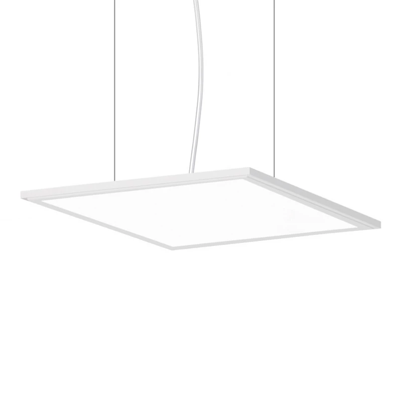 Die LED-Hängeleuchte FL Square 300 PL OP spendet direktes, homogenes und großflächiges Licht für moderne Büro- und Arbeitsräume, Empfangs-, Warte- und Aufenthaltsbereiche. Sie ist als abhängendes Panel in flacher, quadratischer Form gestaltet. Der Rahmen aus Aluminium-Strangpressprofil in weißer, kratzfester Pulverbeschichtung umfasst einen opalen Kunststoffdiffusor. Die seitliche Lichteinspeisung (LED Sidelight-Technologie) und lichtlenkende Kunststoffoptik sorgen für eine homogene Leuchtdichteverteilung über die gesamte Lichtaustrittsfläche.