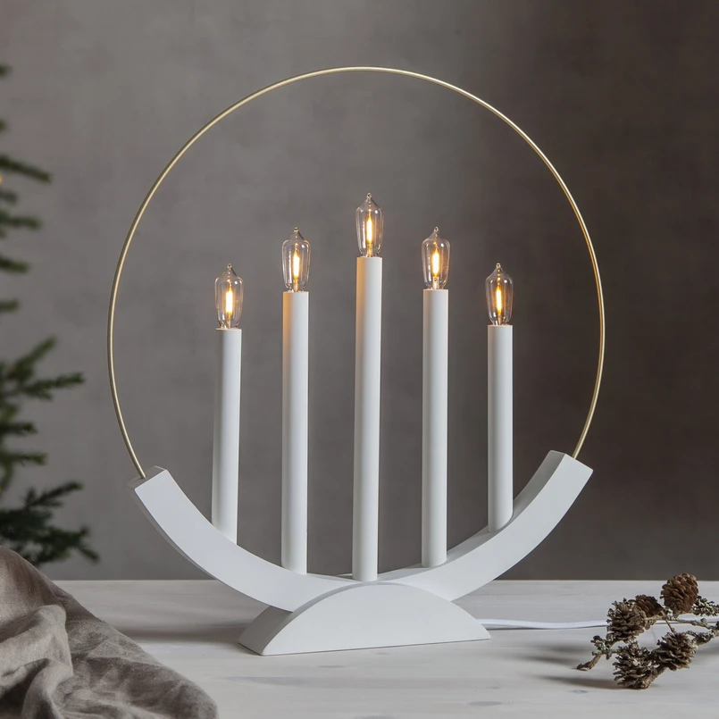 LED-Kerzenleuchter Brace, fünfflammig, weiß/gold