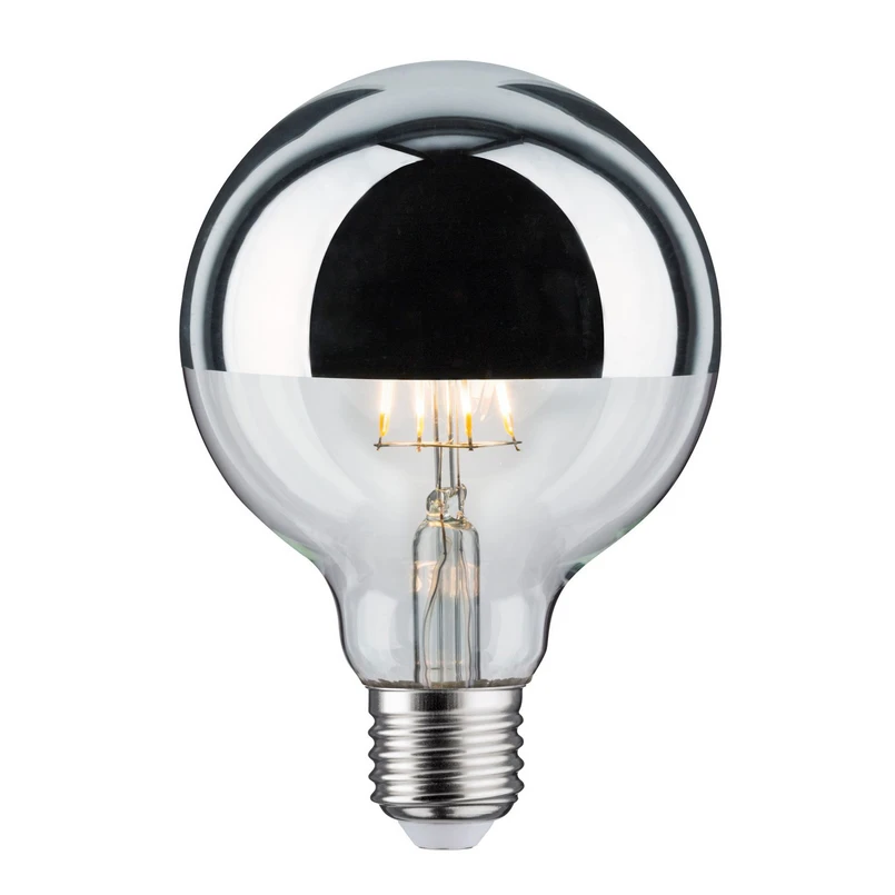 In allen Leuchten, in denen der direkte Blick auf das Leuchtmittel gegeben ist, bietet sich diese LED-Globelampe mit verspiegeltem Kopf an, um blendfreie Beleuchtung zu erzielen.