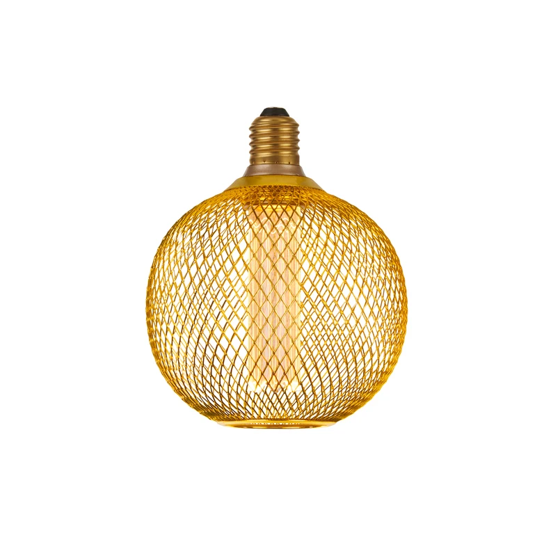 Die LED-Lampe Mesh ist ein Highlight in jeder E27-Fassung, denn die extravagante Lampe in Trommelform ist mit einem goldfarbenen Metallgeflecht umhüllt, das neben dekorativen Akzenten auch einmalige Lichteffekte im Wohnraum verspricht. Sie ist über den Hausanschluss dimmbar, so dass auch die Helligkeit auf die eigenen Bedürfnisse angepasst werden kann.