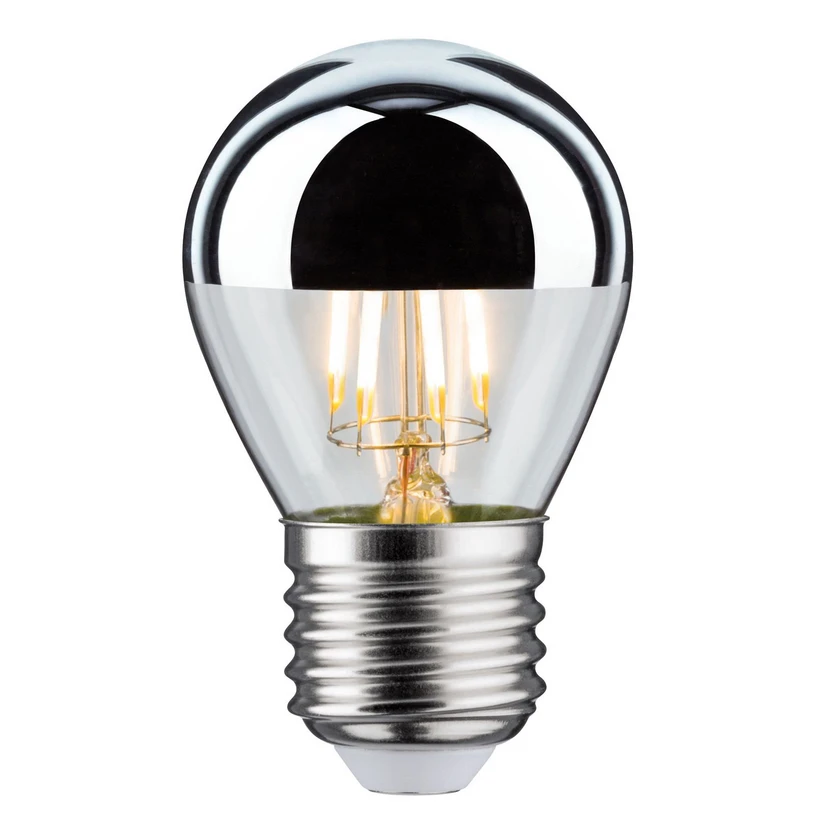 LED-Tropfenlampe E27 Kopfspiegel silber, 2.700K 4,8W