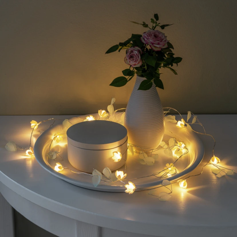 LED-Lichterkette Blätter und Blüten klar/weiß