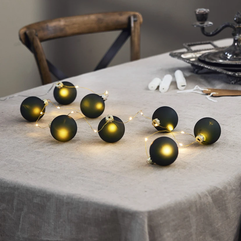 Batteriebetriebene LED-Lichterkette Bliss mit acht dunkelgrünen Glaskugeln