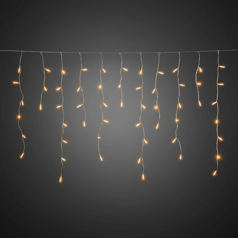 Mit diesem Lichtervorhang, der durch bernsteinfarbene LEDs wirkungsvoll in Szene gesetzt wird, lassen sich Balkone und Dachkanten festlich schmücken. Der Lichtervorhang Eisregen erhellt mit seinem warmen Lichtschein weithin die dunkle Winternacht und bereichert die Weihnachtszeit auf ganz bezaubernde Weise.