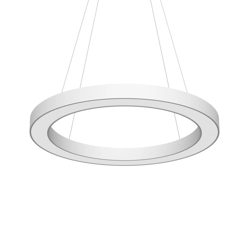 Diese moderne Hängeleuchte überzeugt als effektiver Lichtspender über Bildschirmarbeitsplätzen im Büro, ebenso wie als hochwertiges Gestaltungselement für repräsentative Eingangshallen, Empfangsbereiche oder öffentliche Meetingräume in Geschäftsgebäuden und Hotels. Der weiße Ring aus Aluminium ist im Innern mit einem opalen Acryldiffusor ausgestattet, der das universalweiße Licht der integrierten LEDs zur direkten Arbeitsbeleuchtung nach unten sowie zur indirekten Grundbeleuchtung nach oben ausstrahlt.