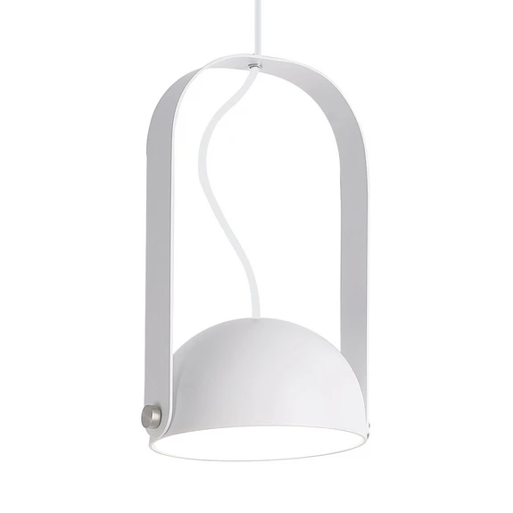 Hemi ist eine moderne LED-Hängeleuchte mit schwenkbarem Leuchtenkopf, der wie eine Halbkugel von einem metallischen Bügel gehalten wird. Durch den Bügel verläuft das Zuleitungskabel hin zum runden Deckenbaldachin. Die im Leuchtenschirm verbauten LEDs strahlen warmweißes Licht nach unten ab, was dank schwenkbarer Eigenschaften des Schirmes auch individuell ausgerichtet werden kann. Die Leuchte Hemi ist mit ihren klaren, geometrischen Formen sehr modern und die sichtbaren Schrauben verleihen ihr einen industriellen Look. Hemi eignet sich hervorragend zur Beleuchtung über dem Esstisch im Wohnbereich oder in der Küche sowie zur Ausleuchtung von Eingangsbereichen.