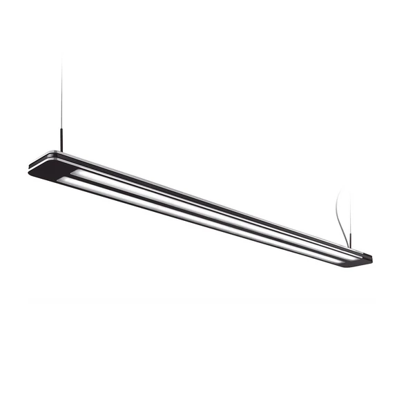 Trentino II ist eine sehr flach konstruierte LED-Pendelleuchte, die mit direkter und indirekter Lichtabgabe für ein ausgewogenes Ambiente in modernen Büroräumen sorgt. Durch eine Acrylabdeckung mit Kegelentblendungsprismen wird das direkte Licht abgegeben, während die indirekte Lichtstreuung durch klares Acryl geschieht. Die Helligkeit kann wunschgemäß dank der im Baldachin integrierten DALI-Dimmung verändert werden.