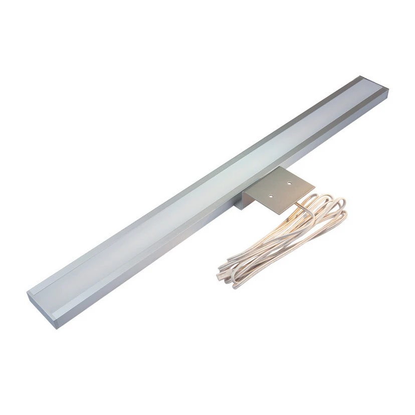 Die Aufbauleuchte Lugano ist schlicht und modern und durch ihre technischen Eigenschaften vielseitig einsetzbar. So spendet sie über einem Spiegelschrank im Bad, über einem Kleiderschrank oder auch in gewerblichen Räumlichkeiten ein helles, warmweißes Licht. Das Gehäuse besteht aus eloxiertem Aluminium und einer Kunststoffabdeckung, die das Licht blendfrei und gleichmäßig verteilt.