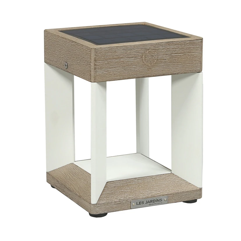 Robuste LED-Solartischleuchte Teckalu mit natürlichem Touch