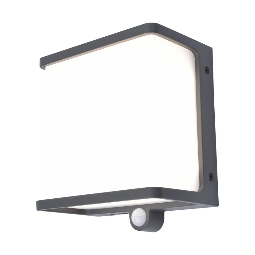 In der Form eines Würfels wurde die LED-Solar-Wandleuchte Doblo gestaltet, sie besteht aus einem Aluminiumrahmen in Anthrazit, in dem ein Diffusor aus Kunststoff sitzt. Das Solarpanel oben auf der Leuchte speist den Akku am Tag mit Energie. Die integrierten Sensoren (Dämmerungs- und Bewegungssensor) sorgen für automatisches Einschalten. Es sind verschiedene Einstellungen möglich.