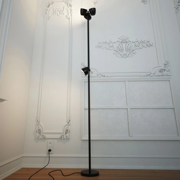Als zusätzliche Lichtquelle verfügt die Stehlampe über ein kleines Leselicht mit starker Leuchtkraft. Dieses ist auf halber Höhe ein einem schmalen Arm an der Stange befestigt und ebenfalls halbrund sowie beweglich gestaltet. So kann Trio nicht nur zur Allgemeinbeleuchtung verwendet werden, sondern setzt auch akzentuierte Lichtpunkte zum Lesen oder Arbeiten. Das Zusatzlicht lässt sich ebenfalls über einen verbauten Schalter ein- und ausschalten.