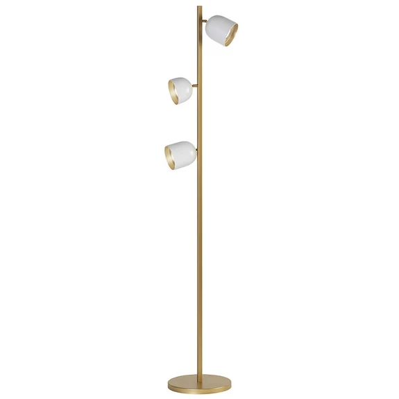 Dank ihrer Größe wird die LED-Stehleuchte Dome zu einem auffälligen Lichtspender in modernen und gehoben eingerichteten Wohn- und Aufenthaltsbereichen. Die Schirme in unterschiedlich großer Kuppelform sind im oberen Bereich des quadratischen Ständers versetzt angeordnet. Da die Schirme dreh- und schwenkbar sind und zudem über optische Linsen verfügen, lässt sich der Lichtausfall je nach Bedarf steuern. Das dominierende goldene Finish sorgt für eine hochwertige, edle Ausstrahlung.