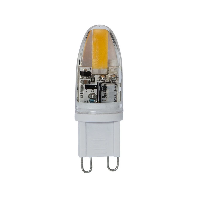 Dieses 1,8 W LED-Leuchtmittel mit G9-Sockel ist dank seiner kompakten Bauweise auch durch kleine Öffnungen hindurch einsetzbar. Die Stiftsockellampe erzeugt warmweißes Licht und ist extern dimmbar.