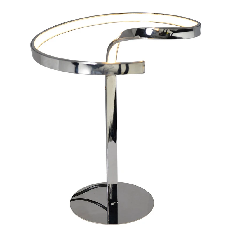 Die Tischleuchten-Version der Serie Loop Line übernimmt in einem kleineren Format das Design der Stehleuchte. Im oberen Bereich des Metallständers sowie dessen fast kreisförmiger Spitze sitzt die warmweiß erstrahlende LED-Lichtquelle. Mit ihrem zeitgemäßen Design eignet sich die LED-Tischlampe Loop Line ideal für moderne Wohn-, Ess- und Schlafzimmer.