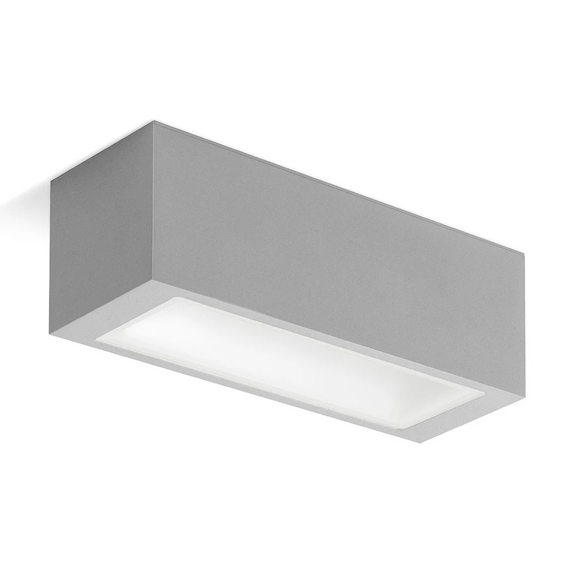 Der Diffusor der Wandlampe ist mit einem innen serigraphierten Flachglas mit Mikroprisma bestückt, wodurch eine breite Lichtstreuung mit homogener Wirkung entsteht.