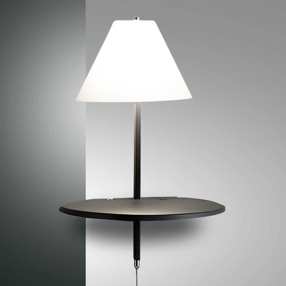 LED-Wandleuchte Goodnight mit USB-Port und angesetzter Tischablage