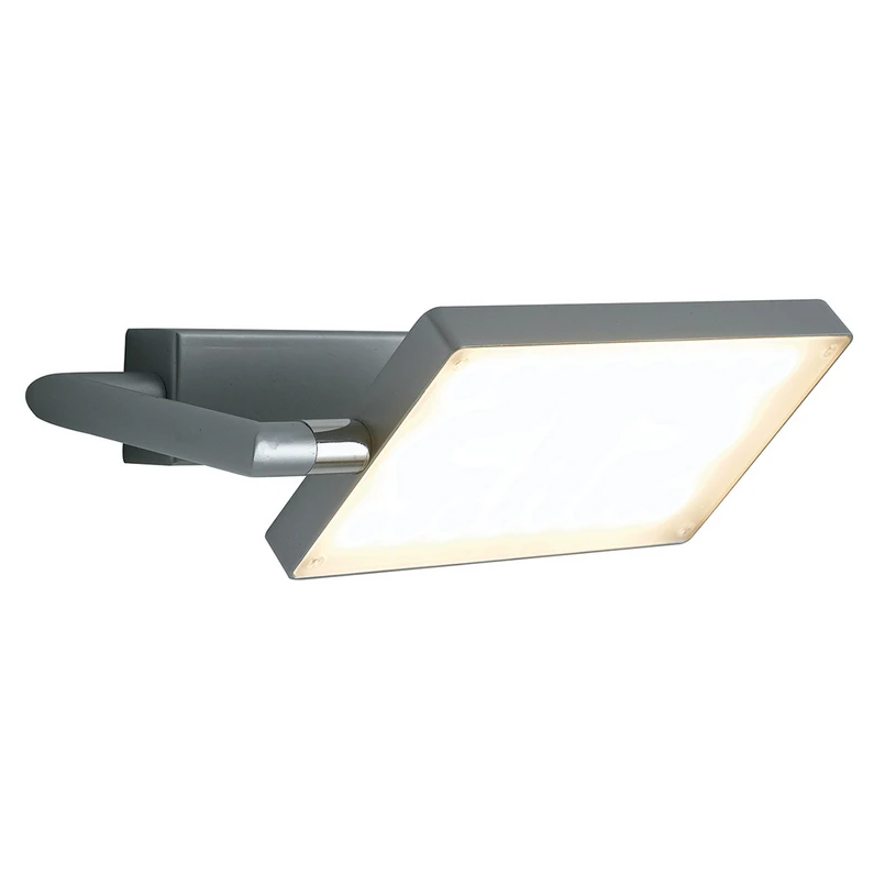 Die Wandhalterung der LED-Wandleuchte Book ist lediglich ein quaderförmiger Kasten, an dessen Seite ein U-förmiger Arm als Halterung für das LED-Modul angebracht ist. Das LED-Modul ist in ein rechteckiges Gehäuse aus Aluminium gefasst und auf der horizontalen Achse um 300° drehbar gelagert. Das ermöglicht es, den Lichtkegel nach oben oder unten an die Wand, an die Decke, an den Boden oder in den Raum hinein zu lenken. Die Wandleuchte eignet sich also für viele Aufgaben, wie zum Beispiel zur Beleuchtung einer Treppe, eines Bildes, als Leselampe hinter einem Sofa oder Sessel oder einfach zur Ergänzung der Hauptbeleuchtung durch indirektes Licht.