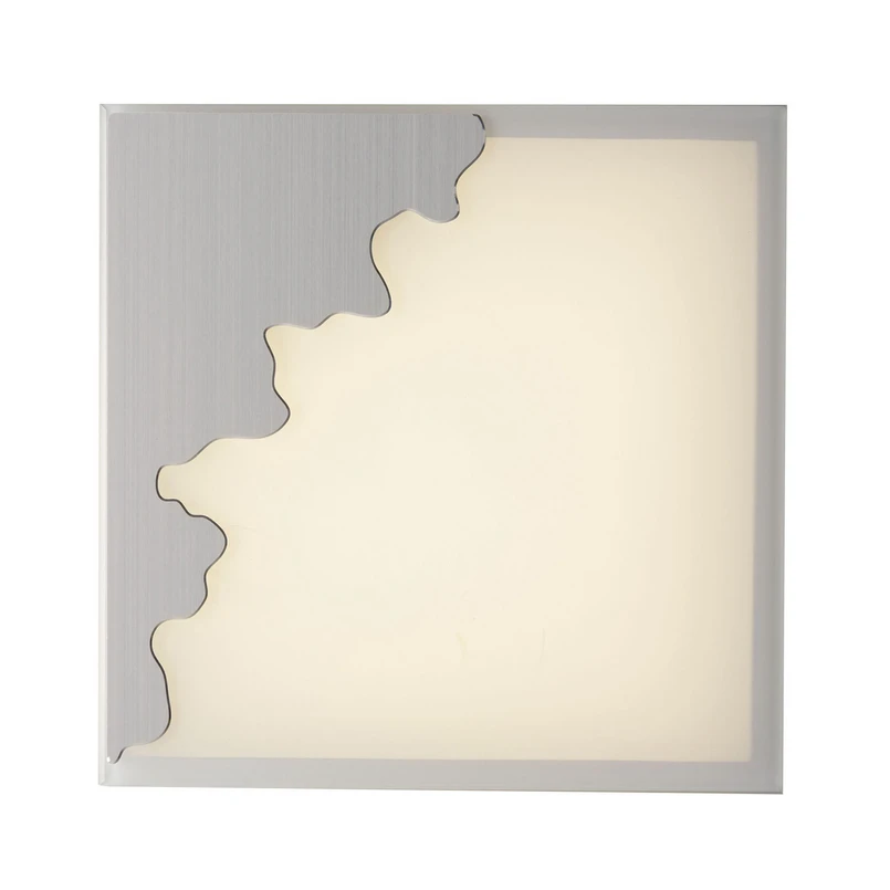 Quadratische LED-Wandleuchte Chic in gebürstetem Silberfinish mit satiniertem Glas