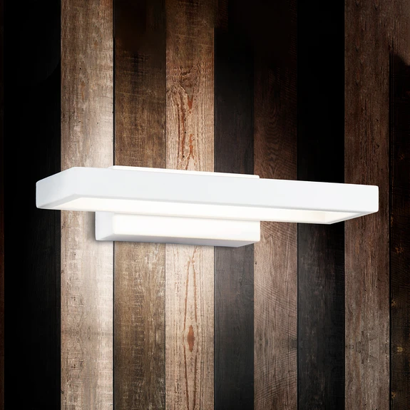 Die formschöne und im Design eher schlicht gehaltene Wandleuchte Everett ist mit einem weiß lackierten Metallrahmen ausgestattet. Dieser enthält, hinter satinierten Diffusoren versteckt, energieeffiziente LED-Module, die mit einem warmweißen Licht blendfrei und sanft die Umgebung erhellen. Durch die Ausrichtung nach unten eignet sich die Wandleuchte Everett zum Beispiel hervorragend für die Montage über Kommoden oder Sideboards bzw. im Garderobenbereich über dem Spiegel.