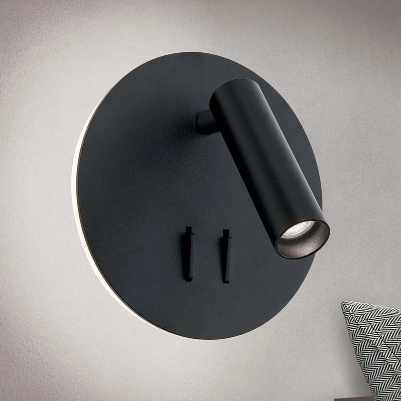 Lenny ist die perfekte Leuchte zur Anbringung neben oder oberhalb des Bettes. Sie bietet sowohl indirekte Beleuchtung als auch direkt strahlendes Licht, das sich durch die Dreh- und Schwenkbarkeit des Spots perfekt ausrichten lässt. Die indirekte Beleuchtung wird durch die rund um die Abdeckplatte im Ring hinter einer satinierten Acrylabdeckung angeordneten LEDs erzeugt. Sie strahlt gleichmäßig rundum an die Wand ab. Die Wandleuchte Lenny besteht aus Aluminium und ist mit zwei Kippschaltern an gut erreichbarer Stelle auf der Wandhalterung ausgestattet, die eine getrennte Schaltung beider Lichtquellen ganz nach Bedarf ermöglichen.