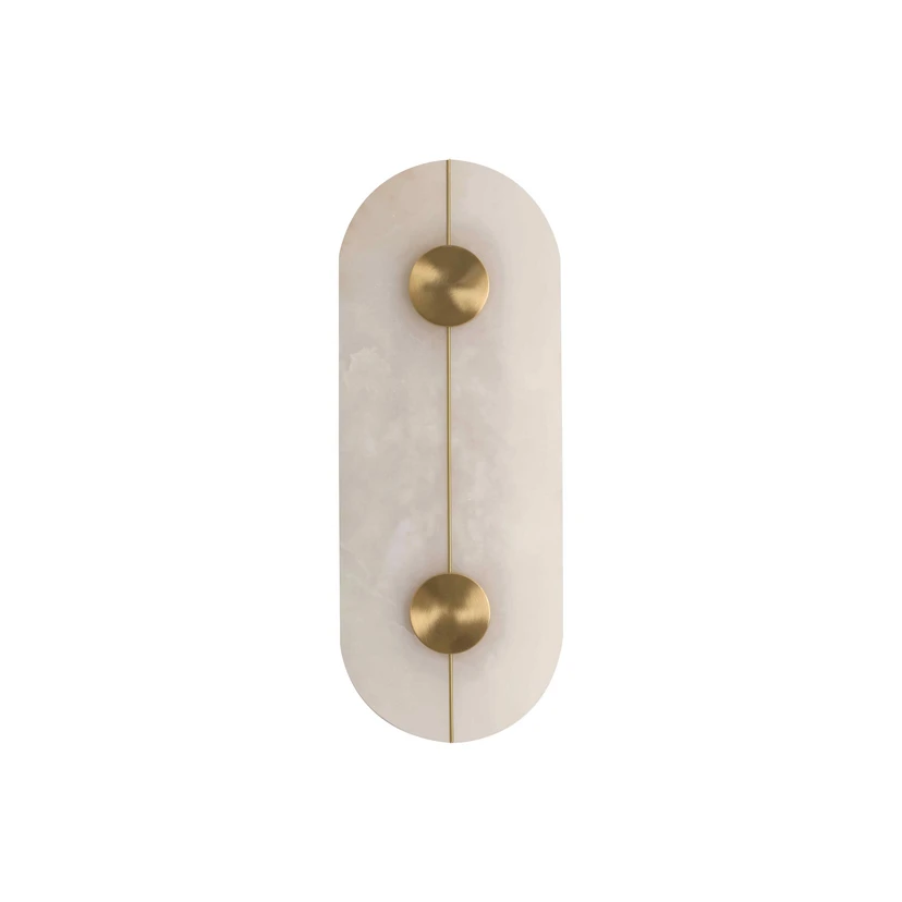 Der Schirm der oval geformten LED-Wandleuchte Lusso besteht aus Marmor und bietet ein sanftes, indirektes Licht für eine behagliche Akzentbeleuchtung in Wohn- und Schlafräumen sowie Fluren.