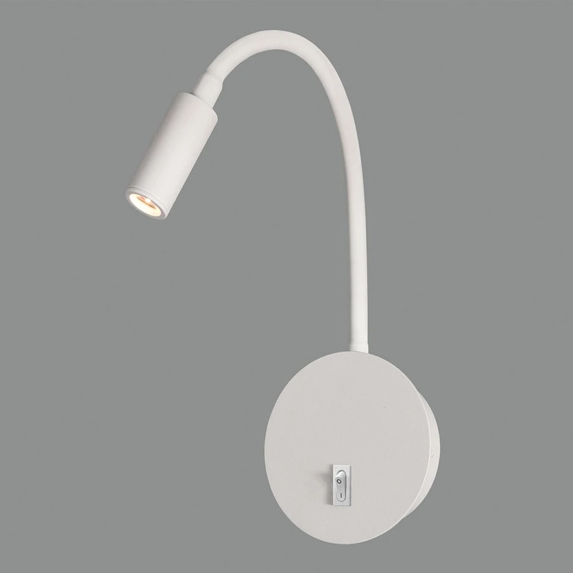 Die LED-Wandleuchte Lyon eignet sich ideal für den Einsatz im Schlafzimmer neben dem Bett. An ihrem runden, flachen Gehäuse ist ein Schalter integriert, der das bequeme An- und Ausschalten direkt an Ort und Stelle ermöglicht. Nach oben heraus verläuft ein flexibler Arm, an dessen Ende ein Spot-artiger Schirm angebracht ist. Die warmweiß leuchtende LED lässt das Licht direkt und punktuell austreten, wodurch beispielsweise beim Lesen eines Buches wunschgemäß beleuchtet werden kann, ohne dass in unmittelbarer Umgebung eine andere Person durch das Licht gestört oder geblendet wird. Dank des Flexarms lässt sich Lyon in Höhe und Position beliebig oft ausrichten und verstellen.