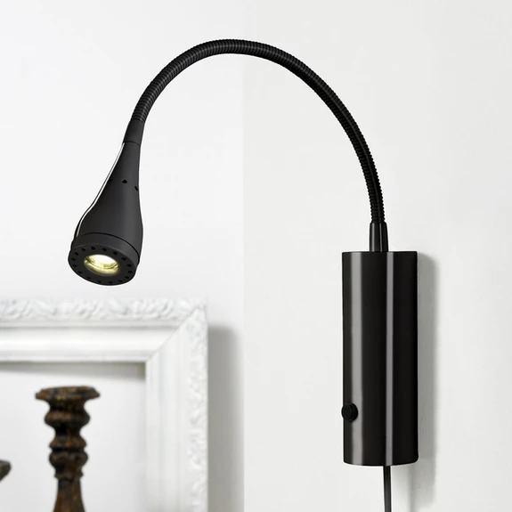 Die LED-Wandleuchte Mento ist der ideale Begleiter neben dem Bett oder dem heimischen Sofa. Über den biegsamen Flexarm lässt sich das Licht (130 Lumen) individuell und punktgenau ausrichten. Damit eignet sich Mento ideal zum Lesen und ist aufgrund der integrierten LED auch äußerst sparsam im Verbrauch. Ein praktischer Schalter befindet sich am Gehäuse.