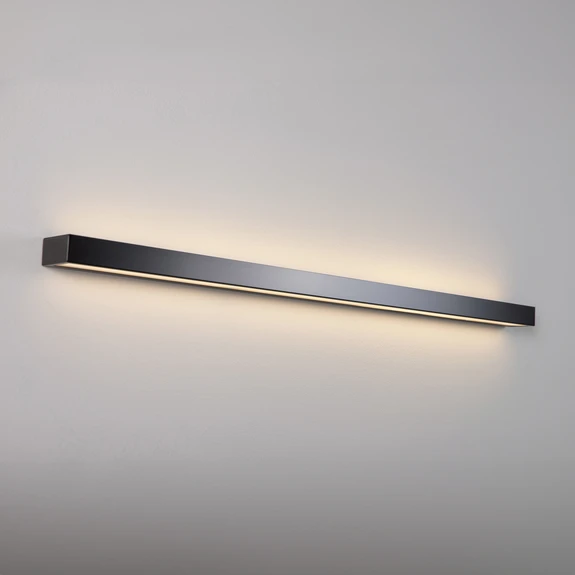 Die LED-Wandleuchte Mera vereint stilvolles Design mit moderner Beleuchtungstechnologie. Mit ihrer eleganten schwarzen Oberfläche und einer Breite von 120 cm setzt sie in jedem Raum ein markantes Statement. Die integrierte LED-Technologie sorgt für eine gleichmäßige und energieeffiziente Ausleuchtung, die sowohl funktional als auch ästhetisch ansprechend ist. Diese Wandleuchte ist ideal für die Schaffung einer angenehmen Atmosphäre, die sowohl beruhigend als auch inspirierend wirken kann.
