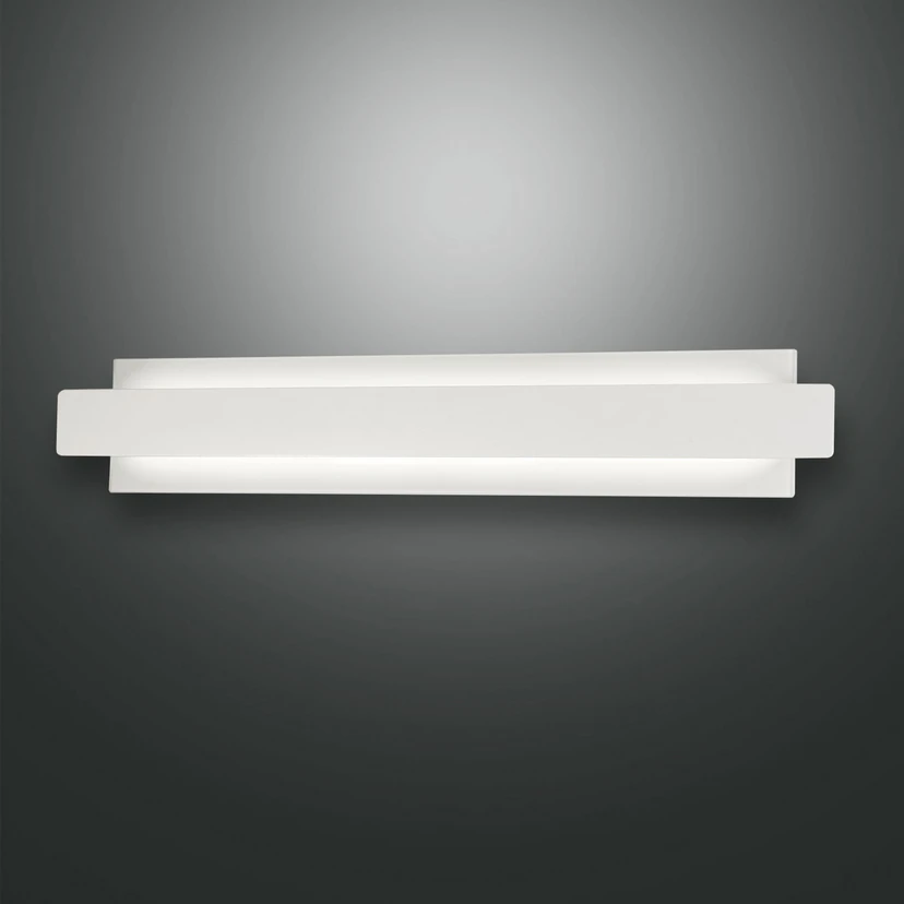 Viele Innenräume, wie einen Flur im modernen Wohnbereich, leuchtet die Wandleuchte Regolo effektiv und gleichzeitig angenehm aus. Die dimmbaren, warmweiß leuchtenden LEDs sind an der Rückseite eines langen, horizontalen Rechtecks aus Metall angebracht und erhellen die umgebende Wand. Zudem dringt das Licht diffus durch eine satinierte Glasplatte, die von dem vorderseitigen Metallelement in einen oberen und einen unteren Abschnitt untergliedert wird.