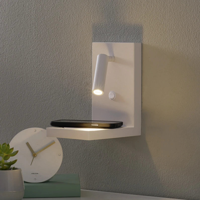 Elegante Wandleuchte Zanzibar mit schwenkbarem LED-Leselicht und induktiver Ladestation fürs Handy