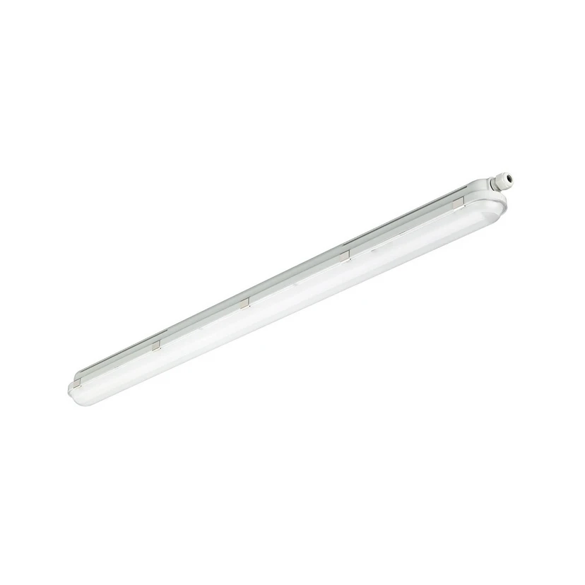 Mit effizienter und langlebiger LED-Technik ausgestattet, ist die Wannenleuchte WTC120C aus der Serie Philips CoreLine Waterproof G2 LSC eine energiesparende Alternative für herkömmliche Leuchten mit Leuchtstoffröhren. WTC120C ist aus schlagzähem Polycarbonat in strahlwassergeschützter Bauweise gefertigt. Die Lieferung erfolgt inklusive Halterungen zur Anbaumontage sowie Haken zur Pendelmontage. Perfekt für Waschräume, Keller, Lagerräume, Parkhäuser und Werkstätten geeignet.