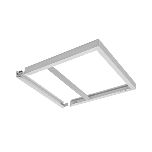 Dieser weiße Rahmen aus stranggepresstem Aluminium ermöglicht die unterhalb der Decke abgesetzte Montage von quadratischen Einbaupanels. Dank der vormontierten magnetischen Ecken ist der Rahmen bereits einbaufertig für Standard-Moduldecken, was die Montage erleichtert.