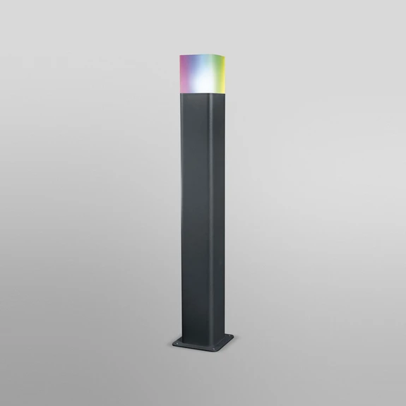 Per App oder Sprachbefehl lässt sich bei der Wegeleuchte Cube schnell und unkompliziert zwischen warmweißem und buntem Licht wechseln. Hierzu ist kein Gateway/Bridge erforderlich, da die LEDVANCE SMART+ WiFi-Technologie eine Koppelung mit dem Smartphone/Tablet über das WLAN ermöglicht. Dank der Gestaltung als hoher, dunkelgrauer Quader mit oben angebrachtem Diffusor aus opalem Polycarbonat fügt sich die LED-Wegeleuchte unauffällig in jede modern gestaltete Außenanlage ein.